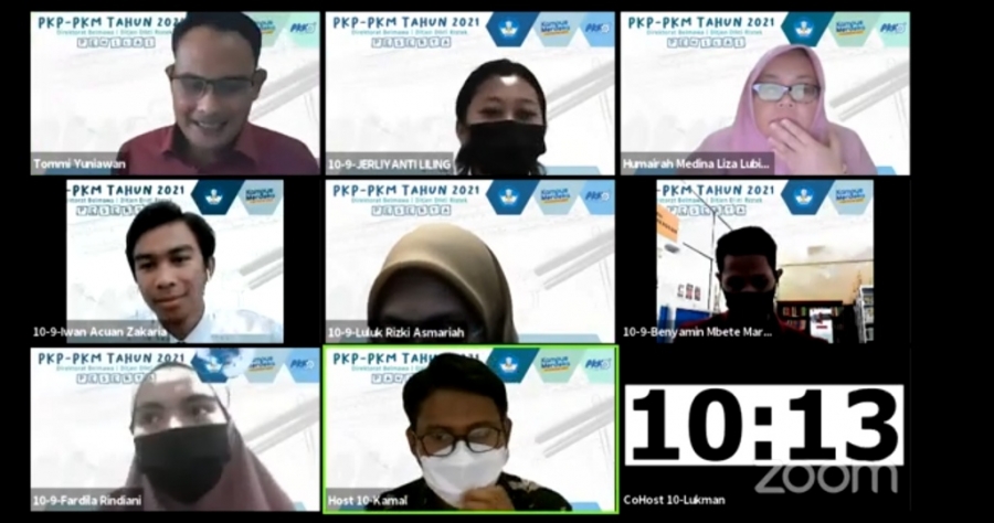 Rabu, 8 September 2021. Tim PKM-PM Psikologi Universitas Pendidikan Muhammadiyah Sorong mengikuti penilaian kemajuan pelaksanaan PKM 2021 (PKP2) yang diselenggarakan oleh Direktorat Jenderal Pembelajaran dan Kemahasiswaan Kementerian Riset, Teknologi, dan Pendidikan Tinggi Republik Indonesia. PKP2 dilaksanakan secara daring terhadap seluruh mahasiswa di Indonesia yang dinyatakan lolos pendanaan Program Kreativitas Mahasiswa tahun 2021 yang dibagi sesuai dengan skema PKM yang dipilih melalui aplikasi zoom.